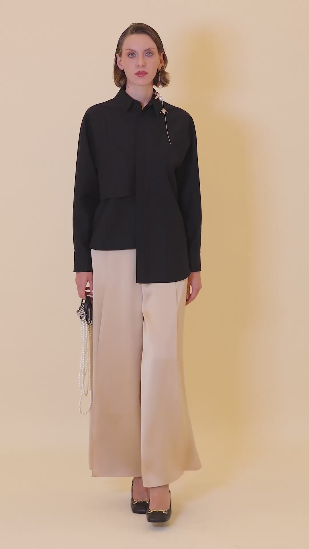 Product Features: Shirt Collar, Asymmetric Cut, Allover Detail, Button-Up, Poplin Fabric