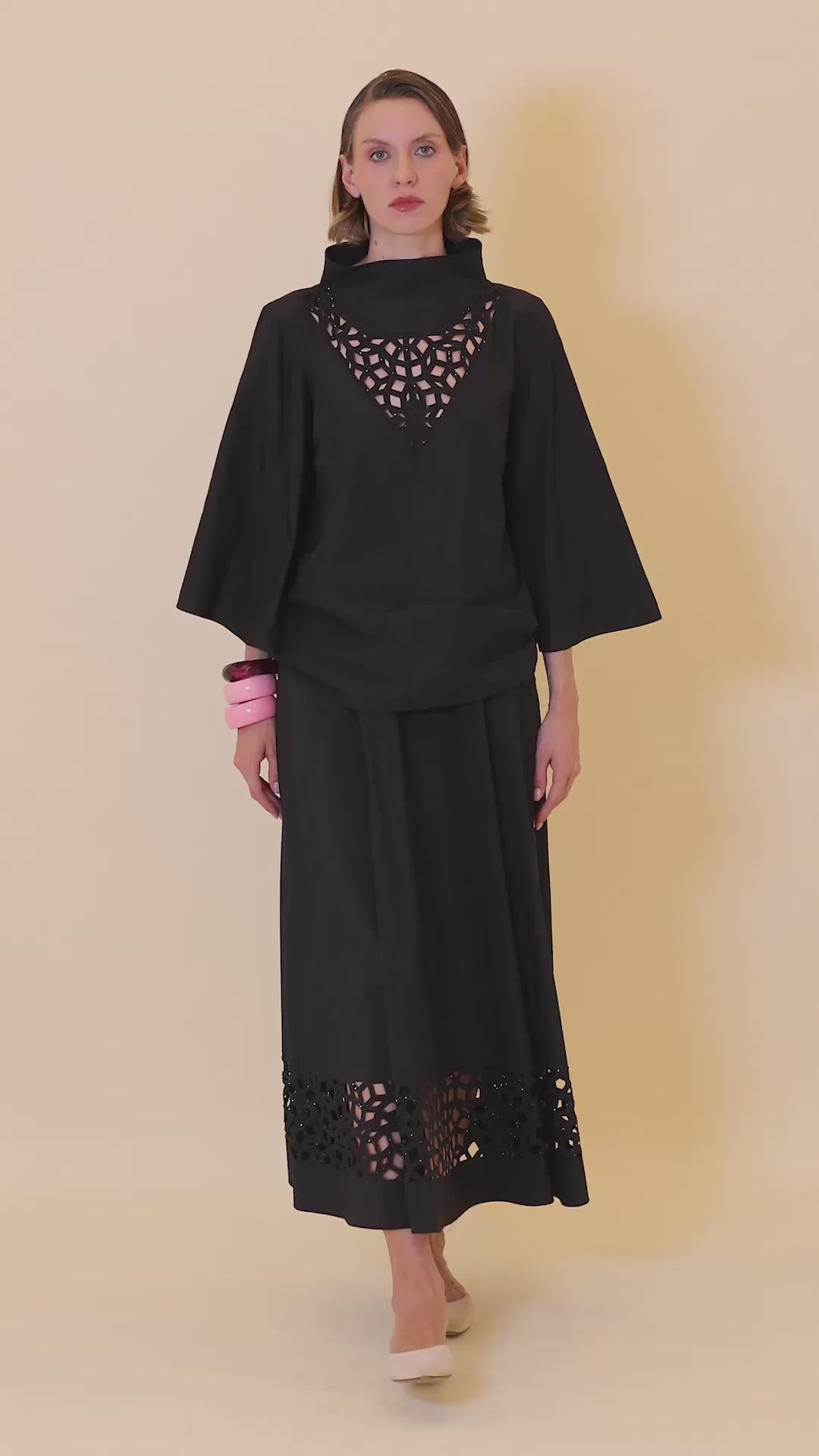 Product Features: Blouse-Skirt Set, Zippered, Elastic Waist, Rhinestone-Stitched, Batwing Sleeves, Pockets