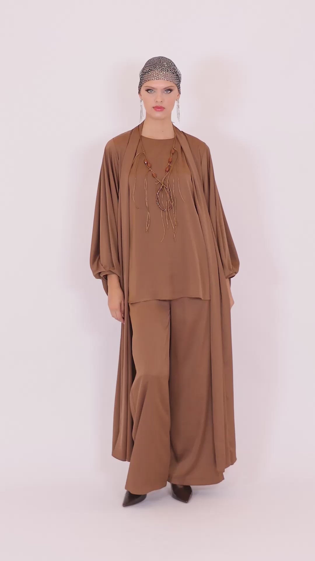 Product Features: Vest-Caftan-Pants Set, Necklace Accessory, Elastic Waist, Pockets, Relaxed Cut