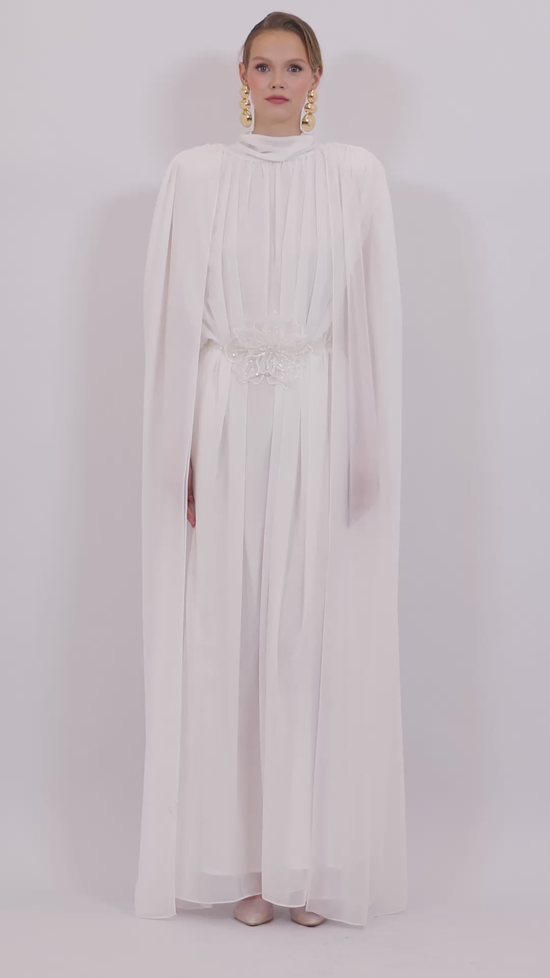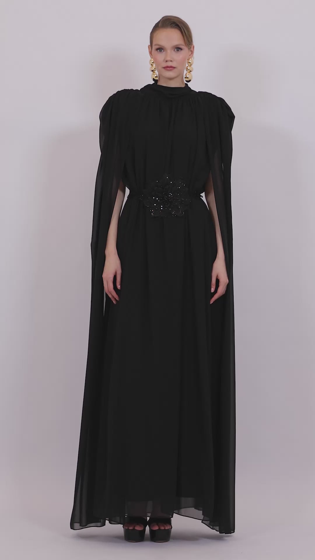Cape Detail Embroidered Dress
