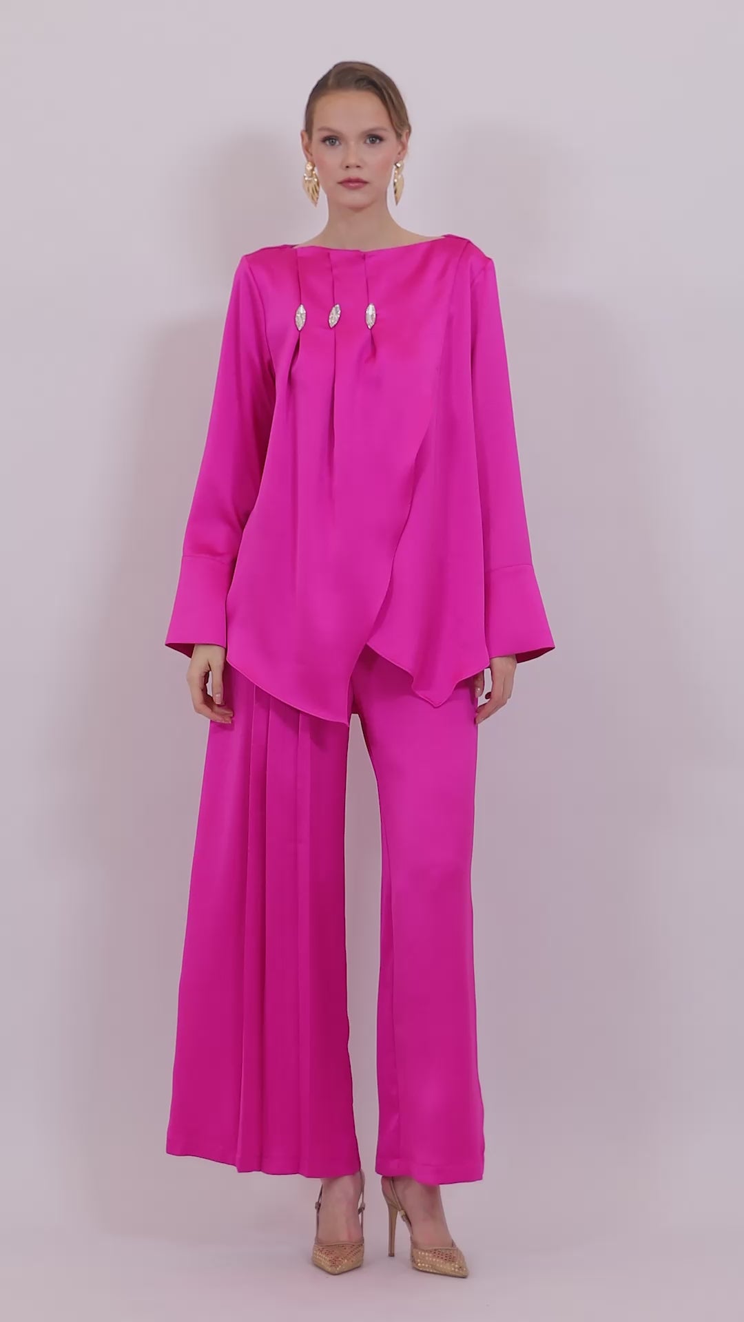 Pleated, Stone Embellished, Elastic Waist, Zipper Closure, Pockets