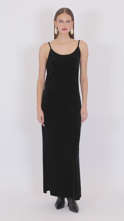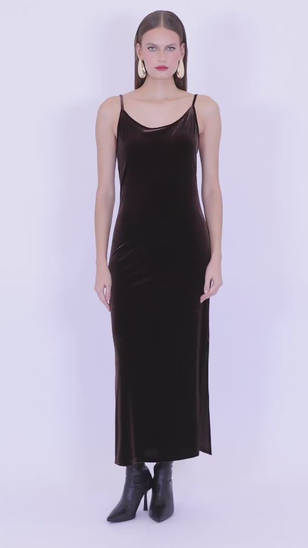Velvet Strappy Dress with Slit Detail