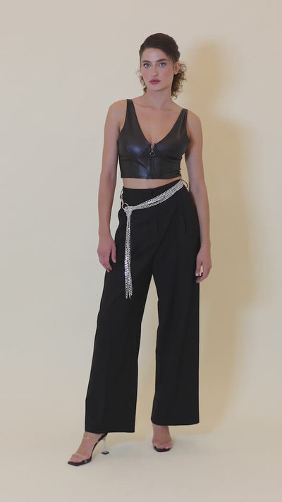 Wide Leg Pleated Trousers